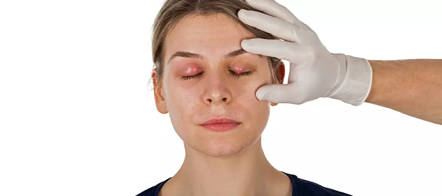 - Отёк. Веко становится плотнее, слизистая оболочка опухает и выступает в глазную щель, окружающие ткани могут изменять цвет. Эта стадия длится не более суток.