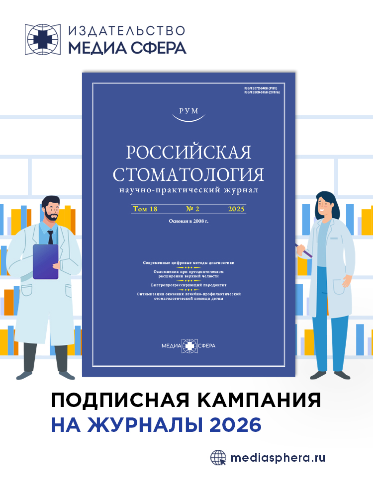 Denis AG, Abushkin IA, Vasil’ev IS, Sudejkina OA, Lapin VO, Romanova OA. Russian Journal of Stomatology. 2016;9(2):77‑77. (На русском языке)