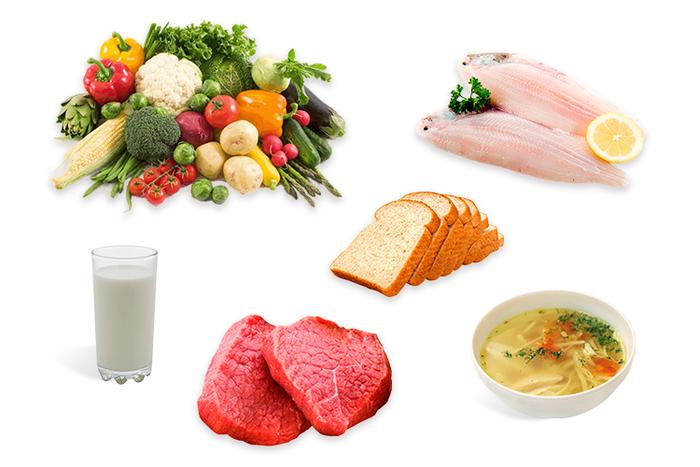 Запрещено употребление сала и животных жиров. Первые блюда должны быть овощными супами без бульонов, никакие мясные наваристые бульоны не входят в рацион. Вторые блюда должны включать нежирное мясо, предпочтительно говядину и птицу.
