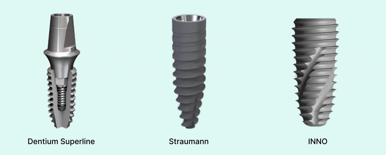 В нашем стоматологическом центре используются имплантационные системы трех производителей: