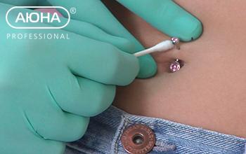 Перед тем как обработать прокол, обязательно тщательно вымойте руки с антисептическим мылом и высушите их. Если вы заметили корочки вокруг прокола, используйте стерильную бинтовую салфетку, смоченную заживляющим средством, и приложите её к проколу на 2-3 минуты. Ватной палочкой, также смоченной, аккуратно удалите все выделения с обеих сторон прокола. Частота и продолжительность ухода должны быть согласованы с вашим мастером.